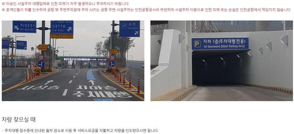2. 발렛파킹 요금과 별도로 인천공항 주차요금이 있습니다.